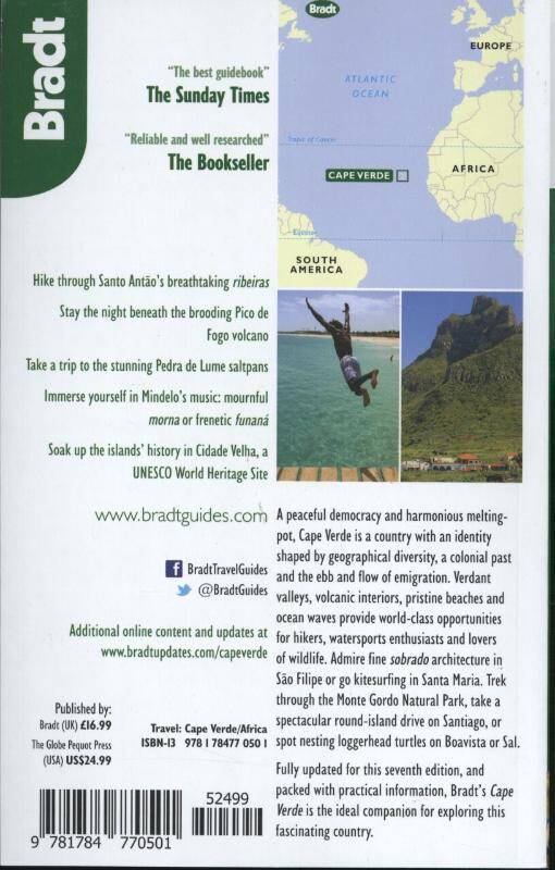 This new 7th edition of Bradt's Cape Verde (Cabo Verde) has been fully revised and updated and remains the only comprehensive English-language guidebook available to the islands of this alluring Atlantic archipelago, described by some as 'Africa light'. The guide includes well-researched history and cultural sections, with a particularly strong section on music, and brings an honest approach to reporting the fragile balance between tourist development and protecting the environment. This new edition reflects the many changes since the previous one, including the introduction of charter flights from the UK to Sal and the first casino-hotel on Sal, as well as providing full information on how to make the most of the less developed islands away from the main tourist hotspots. There is a massive Cape Verdean diaspora in the USA, especially around the Eastern seaboard and Massachusetts in particular. Many emigrants and their descendants return each year to visit their extended families, particularly around festival times, and many own houses in the archipelago. Stable and peaceful, quietly isolated by its mid-Atlantic location, Cape Verde continues to grow economically and to develop its tourist infrastructure at a leisurely pace. With few natural resources, the islands are heavily dependent on imports, foreign remittances and still to some extent on foreign aid. The reduction in the latter has heightened the focus on the importance of tourism as an economic driver and visitor numbers continue to rise. Year-round sunshine makes Cape Verde a particularly appealing destination. The archipelago is diverse, particularly in terms of its tourist infrastructure. Sal and Boavista, the oldest of these volcanic islands are flat with white-sand beaches that rival anything in the world. Consequently, they attract 95% of Cape Verde's visitors, leaving the other seven inhabited islands undeveloped. Hikers and those curious to discover something authentic are drawn to them, spending their time walking amongst the jaw-dropping mountainous landscapes of Fogo or Santo Antão, taking some true time-out in tiny Brava or mellow Maio or enjoying the cultural fusion of African, Portuguese and Brazilian influences in the cities of Praia and Mindelo. The adventurous will find adrenalin rushing as they profit from windsurfing and kitesurfing opportunities, fuelled by strong breezes and Atlantic waves, while for culture, Mindelo is the attraction with a constant backdrop of seductive music, the thread which ties together the islands scattered across the mid-Atlantic.