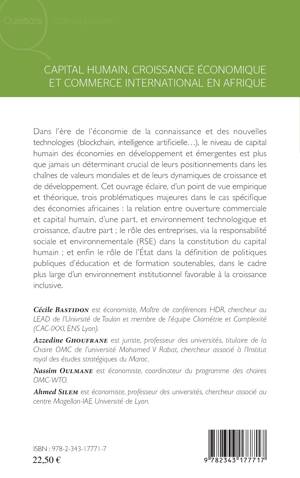 Dans l'ère de l'économie de la connaissance et des nouvelles technologies, le niveau de capital humain des économies en développement et émergentes est plus que jamais un déterminant crucial de leurs positionnements dans les chaînes de valeurs mondiales et de leurs dynamiques de croissance et de développement. Cet ouvrage éclaire trois problématiques majeures dans le cas des économies africaines : la relation entre ouverture commerciale et capital humain ; environnement technologique et croissance ; le rôle des entreprises via la responsabilité sociale et environnementale (RSE) dans la constitution du capital humain ; enfin, le rôle de l'Etat dans la définition de politiques publiques d'éducation.