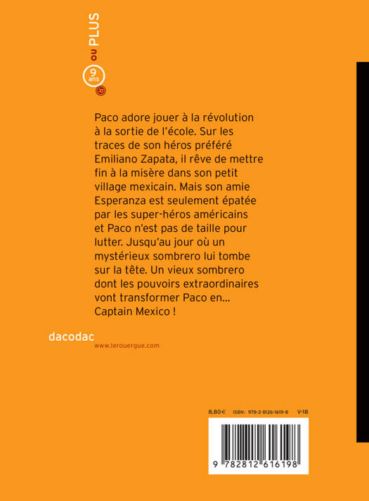 À la frontière mexicaine, dans le petit village de Matamoros, Paco découvre un étrange sombrero magique. Lorsqu'il le porte, tout est possible : Laser explosif ! Crachat de grenades ! Souffle du cyclone ! Paco est prêt à affronter les injustices et se battre contre Donald Trumpette ! Après "Ma grand-mère est une terreur", un nouveau roman original et drôle de Guillaume Guéraud dans la collection "dacodac".