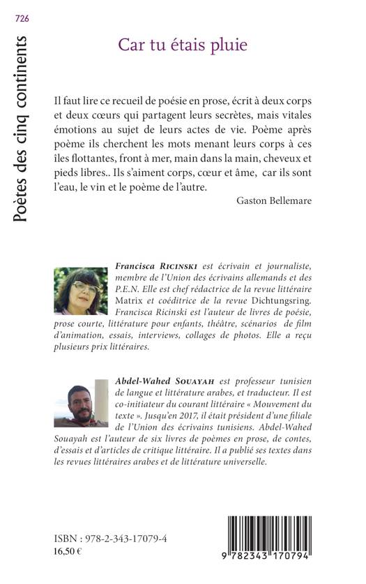 Il faut lire ce recueil de poésie en prose, écrit à deux corps et deux coeurs qui partagent leurs secrètes, mais vitales émotions au sujet de leurs actes de vie. Poème après poème, ils cherchent les mots menant leurs corps à ces îles flottantes, front à mer, main dans la main, cheveux et pieds libres.. Ils s'aiment corps, coeur et âme, car ils sont l'eau, le vin et le poème de l'autre.
