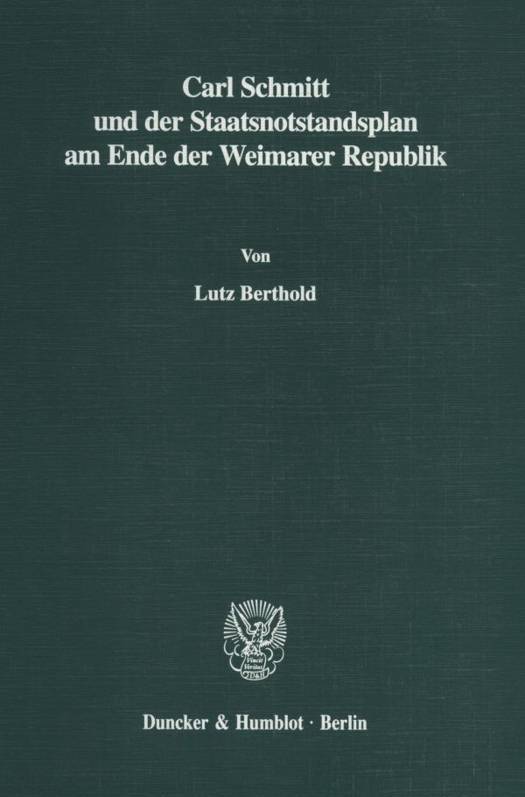 Wie seit langem bekannt, pflegte Carl Schmitt, der umstrittene Staatsrechtler und Regierungsanwalt, spatestens seit dem Sommer 1932 enge Verbindungen zur Wehrmachtsabteilung, d. h. zu jenem Kreis politischer Offiziere, der von General Schleicher mit der Ausarbeitung des gegen die NSDAP gerichteten "Staatsnotstandsplans" betraut war. Bislang unbekannte Dokumente aus dem Nachlaa erlauben jetzt eine wesentlich genauere Rekonstruktion der verfassungspolitischen Absichten und Aktivitaten Schmitts. In einem in letzter Minute formulierten Gutachten fur die Regierung Schleicher entwarf Schmitt einen "Alternativplan", der geeignet gewesen ware, Hitlers Ernennung zum Reichskanzler zu verhindern und einen verfassungskonformen Ausweg aus der Weimarer Staatskrise zu bahnen. Bertholds Schrift macht nicht nur mit neuen historischen Quellen und ihrer verfassungsgeschichtlichen Bedeutung bekannt, sie raumt auch in kurzen und prazisen Ausfuhrungen grundlich mit der Legende auf, Schmitt sei ein Wegbereiter der nationalsozialistischen Machtergreifung gewesen. Ein Mua fur jeden, der uber den Untergang der Weimarer Republik und die politische Rolle Carl Schmitts mitreden will.