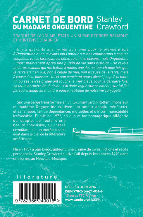 Un court roman étrange, intensément poétique, récit de la folle dérive d'un couple qui se soustrait au monde en prenant la mer à bord d'un luxuriant bateau jardin. Une fascinante métaphore de l'idiosyncrasie amoureuse.