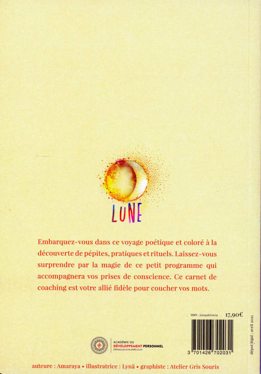 Embarquez-vous dans ce voyage poétique et coloré à la découverte de pépites, pratiques et rituels . Laissez-vous surprendre par la magie de ce petit programme qui accompagnera vos prises de conscience. Ce carnet de coaching est votre allié fidèle pour coucher vos mots.