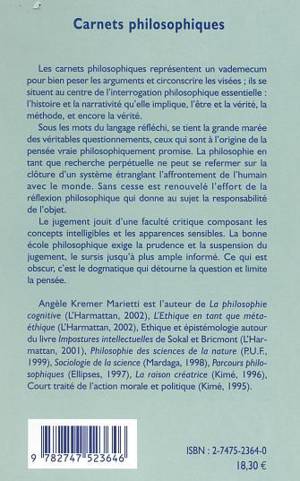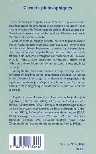 Des pages arrachées à l'oubli de la réflexion qui prit son temps, voici ce que contiennent ces quelques carnets philosophiques, un vademecum personnel pour bien soupeser ses arguments et circonscrire leurs visées. Les divagations ne sont pas trop déroutantes : elles se situent au centre de l'interrogation philosophique essentielle : sur l'histoire et la narrativité qu'elle implique, sur l'être et la vérité, et surtout sur la méthode. Sous les mots du langage réfléchi, se tient la grande marée des véritables questionnements, ceux qui sont à l'origine de la pensée vraie philosophiquement promise.