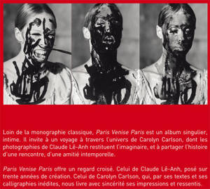 Loin de la monographie classique, Paris Venise Paris est un album singulier, intime. Il invite à un voyage à travers l'univers de Carolyn Carlson, dont les photo graphies de Claude Lê-Anh restituent l'imaginaire, et à partager l'histoire d'une rencontre, d'une amitié intemporelle.