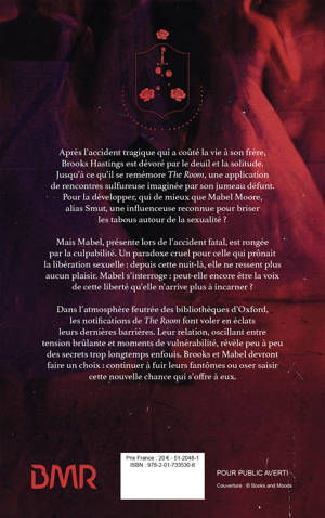 Après l'accident tragique qui a coûté la vie à son frère, Brooks est dévoré par le deuil et la solitude. Jusqu'à ce qu'il se remémore The Room, une application de rencontres sulfureuse imaginée par son jumeau défunt. Pour la développer, qui de mieux que Mabel Moore, alias Smut, une influenceuse reconnue pour briser les tabous autour de la sexualité ? Mais Mabel, présente lors de l'accident fatal, est rongée par la culpabilité. Un paradoxe cruel pour celle qui prônait la libération sexuelle : depuis cette nuit-là, elle ne ressent plus aucun plaisir. Mabel s’interroge : peut-elle encore être la voix de cette liberté qu’elle n’arrive plus à incarner ? Dans l'atmosphère feutrée des bibliothèques d'Oxford, les notifications de The Room font voler en éclats leurs dernières barrières. Leur relation, oscillant entre tension brûlante et moments de vulnérabilité, révèle peu à peu des secrets trop longtemps enfouis. Brooks et Mabel devront faire un choix : continuer à fuir leurs fantômes ou oser saisir cette nouvelle chance qui s'offre à eux.