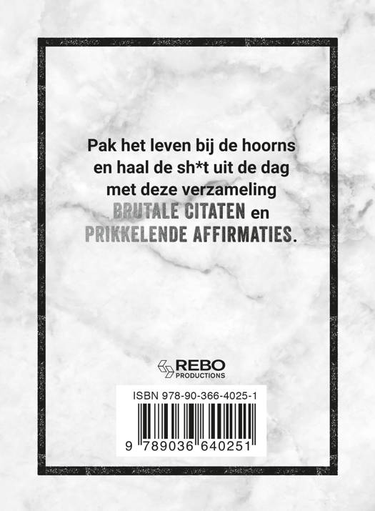 Pak het leven bij de hoorns en haal de sh*t uit de dag met deze verzameling brutale citaten en prikkelende affirmaties.