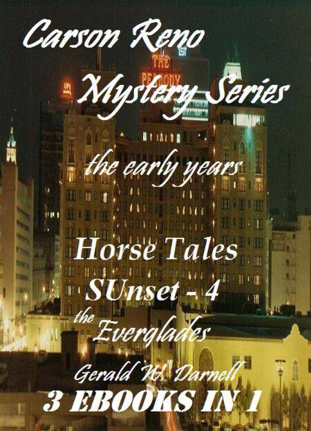 Revised with a new format and new illustrations, these are 3 early novels from Gerald Darnell's Carson Reno Mystery Series. 'Horse Tales' 'SUnset 4' and 'the Everglades' are offered as one complete book. Enjoy 511 pages of vintage Carson Reno as he and his usual characters take you across the US and to an occasional foreign country. Each novel is complete with many new color illustrations added for the reader's enjoyment.