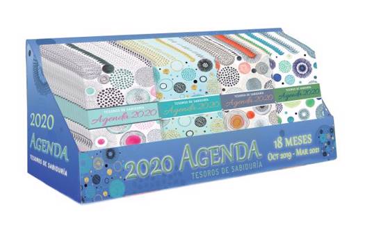 Una pantalla de mostrador de venta minorista que contiene 80 planificadores que se pueden vender individualmente. Adecuado para librerías, bibliotecas, escuelas o en cualquier lugar donde se venden libros.
