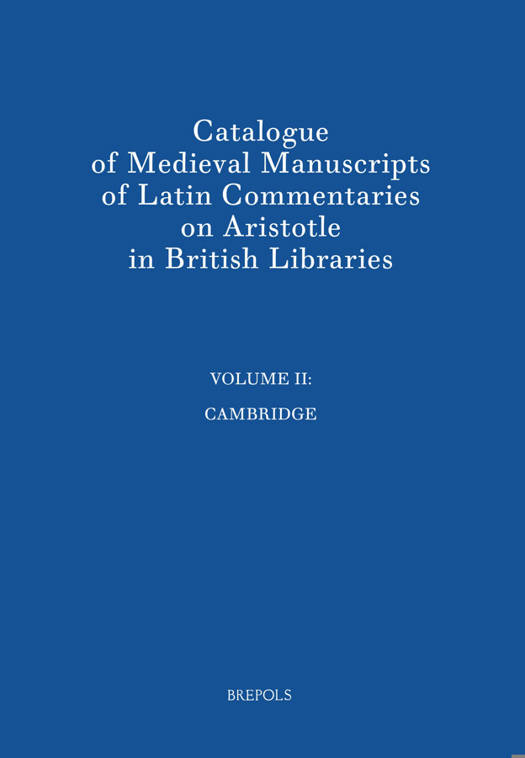 This is the second of a projected series of four volumes describing manuscripts and fragments in British libraries containing commentaries on the Latin Aristotle. This volume covers the University Library, the Fitzwilliam Museum, and the college libraries of the University of Cambridge. It lists 152 items (including a portfolio of fragments from several original books), dating from the tenth century until c. 1500. While a few of these manuscripts came to Cambridge after the Reformation, the majority were already in use in the medieval University. Not many have been adequately described before, while most of the anonymous commentaries have not been listed anywhere. Four indexes are provided to facilitate searching the main text. Rodney M. Thomson is Emeritus Professor of Medieval History at the University of Tasmania and Honorary Research Fellow in its School of History & Classics. He has published widely on books, libraries and learning in western Europe between the ninth and sixteenth centuries.