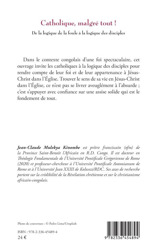 Dans le contexte congolais d’une foi spectaculaire, cet ouvrage invite les catholiques à la logique des disciples pour rendre compte de leur foi et de leur appartenance à Jésus-Christ dans l’Église. Trouver le sens de sa vie en Jésus-Christ dans l’Église, ce n’est pas se livrer aveuglément à l’absurde ; c’est s’appuyer avec confiance sur une assise solide qui est le fondement de tout.