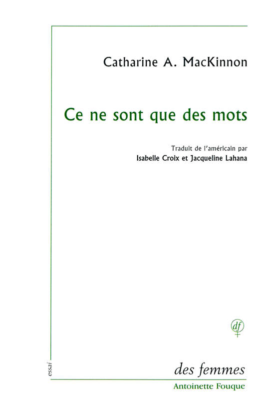 « Il n'existe aucune preuve étayant la thèse selon laquelle la pornographie ne cause pas de préjudices, et même les tribunaux ne cherchent plus de faux-fuyants devant ses ravages. Le scandale aujourd'hui, c'est que les préjudices qu'elle provoque constituent la preuve de sa puissance en tant qu'idée et, que, donc, elle doit être protégée au nom de la liberté d'expression. Ayant transformé des préjudices réels en idée de préjudice, et la discrimination en diffamation, les tribunaux nous disent en substance que, dans la mesure où les produits sont diffamatoires, c'est-à-dire contiennent des idées diffamatoires, ils doivent être protégés, même s'ils exercent une discrimination à l'encontre des femmes en usant de moyens qui vont de l'objectification au meurtre. » C.A.McK.