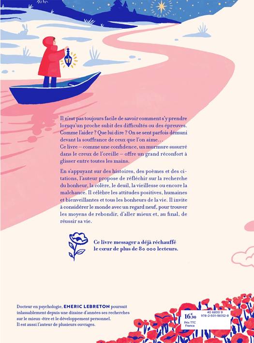 Il n’est pas toujours facile de savoir comment s’y prendre lorsqu’un proche subit des difficultés ou des épreuves. Comme l’aider ? Que lui dire ? On se sent parfois démuni devant la souffrance de ceux que l’on aime… Ce livre – comme une confidence, un murmure susurré dans le creux de l’oreille – offre un grand réconfort à glisser entre toutes les mains. En s’appuyant sur des histoires, des poèmes et des citations, l’auteur propose de réfléchir sur la recherche du bonheur, la colère, le deuil, la vieillesse ou encore la malchance. Il célèbre les attitudes positives, humaines et bienveillantes et tous les bonheurs de la vie. Il invite à considérer le monde avec un regard neuf, pour trouver les moyens de rebondir, d’aller mieux et, au final, de réussir sa vie.