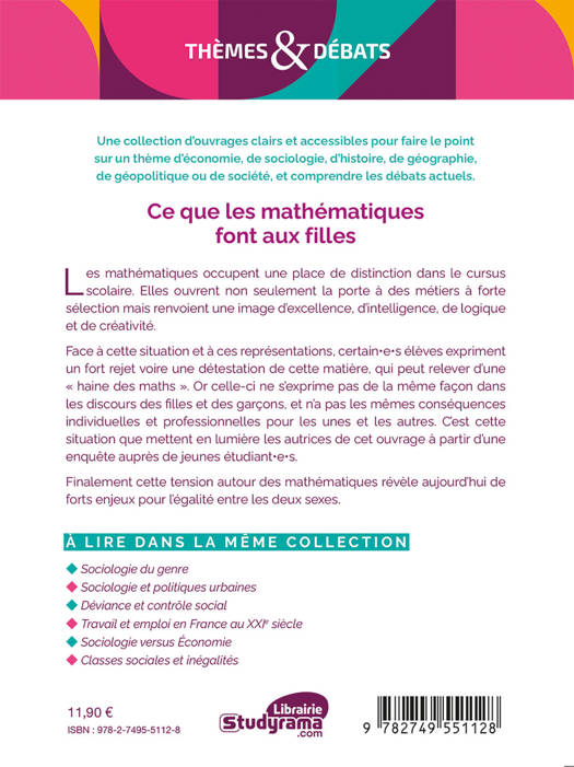 À partir d’une étude de terrain menée entre 2016 et 2019 auprès d’élèves et de professeurs, les auteures démontrent que l’aversion des mathématiques touche différemment les filles et les garçons et que la tension autour de cette discipline révèle de forts enjeux pour l’égalité entre les sexes, notamment en termes d’orientation professionnelle. Les stéréotypes de genre s’inscrivent de façon insidieuse dans les représentations sociétales, et particulièrement à propos des mathématiques, et jouent un rôle sur la perception que les filles ont d’elles-mêmes et des compétences supposées nécessaires à la réussite dans cette discipline “reine”.
