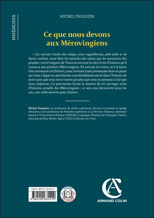 Révéler la part du patrimoine légué par l’époque mérovingienne franque (Ve-VIIIe s.) à la France, qui ne lui doit pas seulement son nom, mais nombre de ses attributs matériels et immatériels, à commencer par sa forme même, tel est l'objet de ce volume. Car si le patrimoine mérovingien est déterminant pour comprendre certains traits caractéristiques de notre pays (comme la centralité parisienne, jusqu'alors inconnue), il est un fait que cette période s’est effacée de notre mémoire collective, longtemps réduite à un "âge obscur", aux mains des mythiques "rois fainéants". Cet ouvrage réhabilite brillamment ces quatre siècles de règnes mérovingiens en nous en montrant l'originalité, la richesse et le poids (politique, culturel, sociétal, religieux) qu'ils ont eu dans l'histoire de la France. Il met en lumière de grandes figures tels Clovis, le roi Dagobert, saint Martin de Tours ou encore les "femmes puissantes" que sont Brunehaut, sainte Geneviève ou Frédégonde.