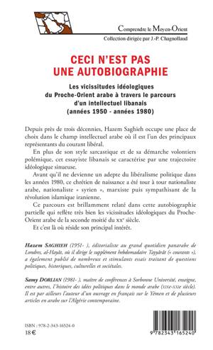 Depuis près de trois décennies, Hazem Saghieh occupe une place de choix dans le champ intellectuel arabe où il est l'un des principaux représentants du courant libéral. Sarcastique, volontiers polémique, cet essayiste libanais se caractérise par une trajectoire idéologique sinueuse. Adepte du libéralisme politique dans les années 1980, ce chrétien de naissance a été tour à tour nationaliste arabe, nationaliste « syrien », marxiste puis sympathisant de la révolution islamique iranienne. Ce parcours est brillamment relaté dans cette autobiographie partielle qui reflète très bien les vicissitudes idéologiques du Proche-Orient arabe de la seconde moitié du XXe siècle.