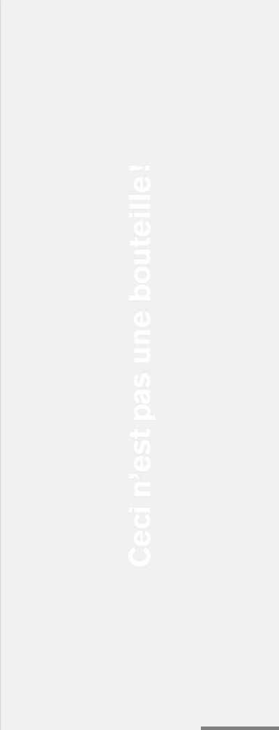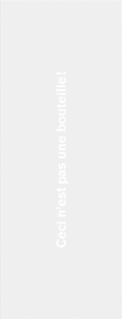 Cette paraphrase du fameux Ceci n'est pas une pipe de Magritte (1928) pose la question du rapport entre un objet - en l'occurence, une bouteille -, son statut et sa représentation.