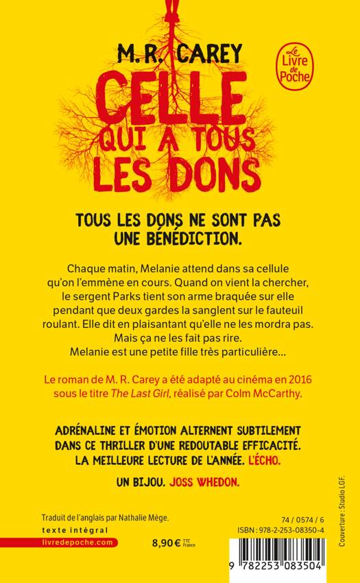 Chaque matin, Melanie attend dans sa cellule qu'on l'emmène en cours. Quand on vient la chercher, le sergent Parks garde son arme braquée sur elle pendant que deux gardes la sanglent sur le fauteuil roulant. Elle dit en plaisantant qu'elle ne les mordra pas. Mais ça ne les fait pas rire.