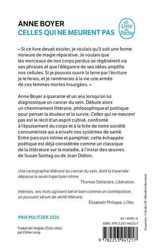 « Si ce livre devait exister, je voulais qu’il soit une forme mineure de magie réparative. Je voulais que les morceaux de nos corps perdus se régénèrent via ses phrases et que l’élégance de ses idées amplifie nos cellules. Si je pouvais ouvrir la terre par l’écriture je le ferais, et je ramènerais à la vie une armée de ces femmes mortes insurgées. » Anne Boyer a quarante et un ans lorsqu’on lui diagnostique un cancer du sein. Débute alors un cheminement littéraire, philosophique et politique pour penser la douleur et la survie. Celles qui ne meurent pas est le récit d’un esprit cultivé, confronté à l’épuisement du corps et à la folie de notre société consumériste qui a envahi nos systèmes de santé. Entre parcours intime et pamphlet, cette échappée poétique est déjà considérée comme un classique de la littérature sur la maladie, à l’instar des œuvres de Susan Sontag ou de Joan Didion.