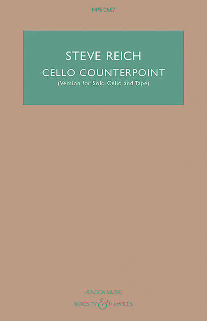 (Boosey & Hawkes Scores/Books). Cello Counterpoint (2003) is scored for eight cellos, and can be played by a soloist with the other parts pre-recorded. This tape is available from the Boosey & Hawkes rental library. Alternately, the piece can be played by a Cello Octet. (There are differences in distribution of parts between the two versions.) The piece is in three movements: fast, slow, fast. The first and last movements are both based on a similar four-chord cycle that moves ambiguously back and forth between C minor and E-flat major. This harmonic cycle is treated extremely freely however, particularly in the third movement. The second, slow movement, is a canon in E-flat minor involving, near the end of the movement, seven separate voices. The piece is a little more than 11 minutes in duration, and was co-commissioned by the Koussevitzky Foundation in the Library of Congress, the Royal Conservatory in The Hague and Leiden University, for cellist Maya Beiser.