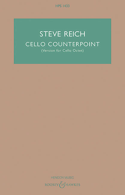 (Boosey & Hawkes Scores/Books). Cello Counterpoint (2003) is scored for eight cellos, and can be played by a soloist with the other parts pre-recorded. This tape is available from the Boosey & Hawkes rental library. Alternately, the piece can be played by a Cello Octet. (There are differences in distribution of parts between the two versions.) The piece is in three movements: fast, slow, fast. The first and last movements are both based on a similar four-chord cycle that moves ambiguously back and forth between C minor and E-flat major. This harmonic cycle is treated extremely freely however, particularly in the third movement. The second, slow movement, is a canon in E-flat minor involving, near the end of the movement, seven separate voices. The piece is a little more than 11 minutes in duration, and was co-commissioned by the Koussevitzky Foundation in the Library of Congress, the Royal Conservatory in The Hague and Leiden University, for cellist Maya Beiser.