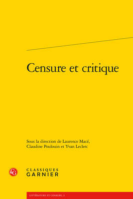 Depuis la parution en 1959 de l'ouvrage de Reinhart Koselleck, Le Règne de la critique, censure et critique apparaissent comme deux concepts a priori irréconciliables. Après le développement des études sur les différentes formes de censure sous l'Ancien Régime et la mise au jour de l'interrogation posée par la modernité littéraire de la responsabilité de l'écrivain, ce volume déplace ces questionnements dans le champ des études littéraires en les envisageant de manière pluridisciplinaire sur la longue durée (XVIIe-XXe siècle). Il interroge censure et critique comme formes de réception des textes, mais aussi leur fonction de structuration du champ littéraire dans le traitement qu'elles réservent aux textes et aux auteurs, et enfin les discours qu'elles tiennent sur eux.