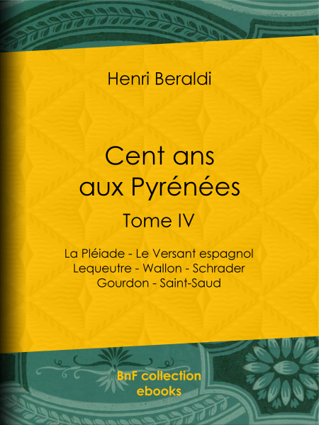 BnF collection ebooks - "Neuf dixièmes de siècle vont s'être écoulés depuis l'ascension du Mont-Blanc par Saussure, depuis la révélation des Pyrénées et l'attaque de la Maladetta par Ramond. Trois quarts de siècle depuis la brèche de Tuquerouye et le Mont-Perdu. La conquête des grands sommets s'achève. Grands, c'est-à-dire non seulement hauts, mais imposants, prééminents, chefs de groupe — les monts dominateurs, disait-on jadis."