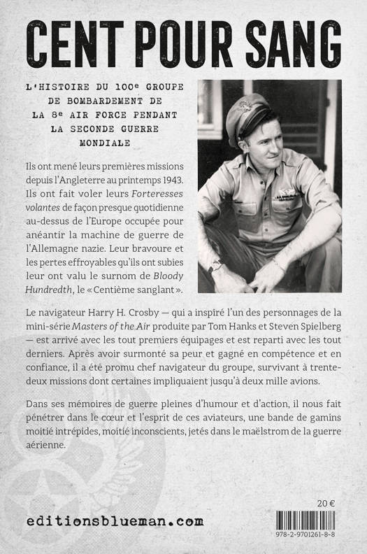 Ils ont mené leurs premières missions depuis l’Angleterre au printemps 1943. Ils ont fait voler leurs Forteresses volantes de façon presque quotidienne au-dessus de l’Europe occupée pour anéantir la machine de guerre de l’Allemagne nazie. Leur bravoure et les pertes effroyables qu’ils ont subies leur ont valu le surnom de Bloody Hundredth, le « Centième sanglant ». Le navigateur Harry H. Crosby — qui a inspiré l’un des personnages de la mini-série Masters of the Air produite par Tom Hanks et Steven Spielberg — est arrivé avec les tout premiers équipages et est reparti avec les tout derniers. Après avoir surmonté sa peur et gagné en compétence et en confiance, il a été promu chef navigateur du groupe, survivant à trente-deux missions dont certaines impliquaient jusqu’à deux mille avions. Dans ses mémoires de guerre pleines d’humour et d’action, il nous fait pénétrer dans le coeur et l’esprit de ces aviateurs, une bande de gamins moitié intrépides, moitié inconscients, jetés dans le maëlstrom de la guerre aérienne.