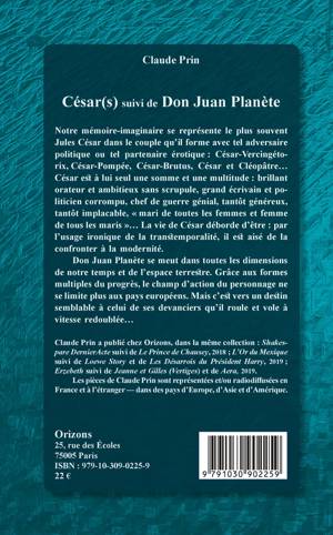 Notre mémoire-imaginaire se représente le plus souvent Jules César dans le couple qu'il forme avec tel adversaire politique ou tel partenaire érotique : il est à lui seul une somme et une multitude : brillant orateur et ambitieux sans scrupule, grand écrivain et politicien corrompu, chef de guerre génial. Don Juan Planète se meut dans toutes les dimensions de notre temps et de l'espace terrestre. Grâce aux formes multiples du progrès, le champ d'action du personnage ne se limite plus aux pays européens.