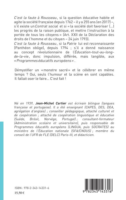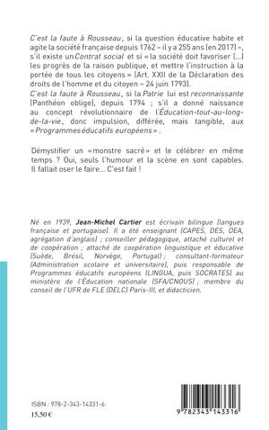 " C'est la faute à Rousseau" si la question éducative habite et agite la société française depuis plus de 255 ans ! "C'est la faute à Rousseau" s'il a donné naissance au concept révolutionnaire de l'éducation-tout-au-long-de-la-vie ! Démystifier un auteur "monstre sacré" et le célébrer en même temps : il fallait oser le faire. C'est fait !