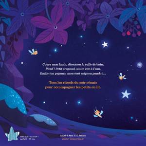 Quand vient le soir, vient l'heure de tous les petits rituels avant d'aller se coucher : Cours mon lapin, direction la salle de bain ! Plouf ! Petit crapaud, saute vite à l'eau ! Enfile ton pyjama, mon tout mignon panda ! ... À travers des scènes tendres et un défilé de bébés animaux craquants, cet album accompagnera en douceur les tout-petits de l'heure du bain à l'heure du dodo !