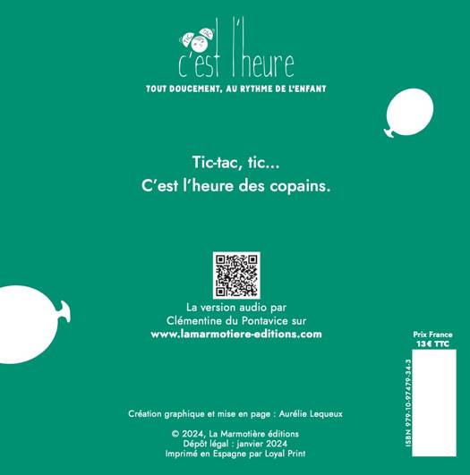 Tic-tac, c'est l'heure, une collection autour des rituels de la journée, tout en douceur, au rythme de l'enfant.<br /><br /> Tic-tac, tic...<br /> C'est l’heure des copains.