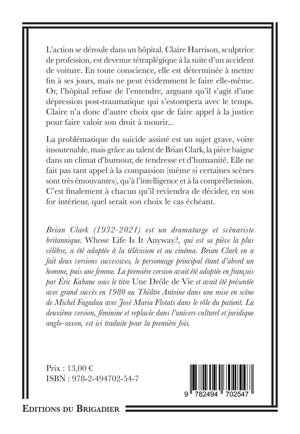 L'action se déroule dans un hôpital. Claire Harrison, sculptrice de profession, est devenue tétraplégique à la suite d’un accident de voiture. En toute conscience, elle est déterminée à mettre fin à ses jours, mais ne peut évidemment le faire elle-même. Or, l’hôpital refuse de l’entendre, arguant qu’il s’agit d’une dépression post-traumatique qui s’estompera avec le temps. Claire n’a donc d’autre choix que de faire appel à la justice pour faire valoir son droit à mourir…