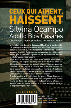 Un hôtel en bord de mer, à Bosque del Mar. C'est là que le médecin homéopathe Humberto Huberman a choisi de se ressourcer, espérant y trouver le calme nécessaire à l'écriture de scénarios auxquels il songe. Ce lieu reculé est pourtant loin d'être aussi apaisé qu'il le souhaite : rapidement, un des hôtes est retrouvé mort et d'autres disparaissent. Alors qu'une tempête de sable isole encore davantage la résidence, une enquête est diligentée et les relations entre les différents personnages se tendent, chacun devenant progres- sivement suspect, épiant et s'alliant tour à tour avec ses voisins. De la passion à la haine, en passant par l'envie, c'est toute une palette de passions humaines qui est mise en lumière tandis que se dévoilent les fantômes et les désirs de chacun. Grands amateurs de littérature de genre, Silvina Ocampo et Adolfo Bioy Casares tissent, dans leur unique oeuvre à quatre mains, un huis clos astucieux et redoutablement efficace où leurs lectures ne cessent d'affleurer, comme autant d'influences et de personnages à part entière.