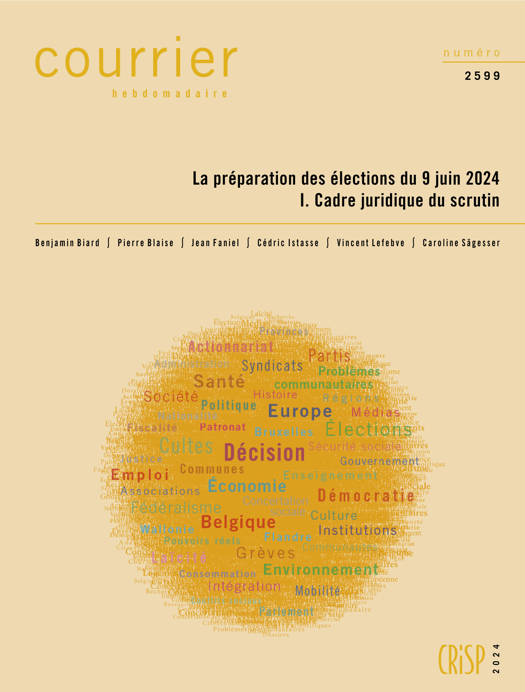 Le 9 juin 2024, les citoyens sont appelés à procéder à l’élection directe des 150 membres de la Chambre des représentants, des 22 représentants belges au Parlement européen, des 75 députés du Parlement wallon, des 89 députés du Parlement de la Région de Bruxelles-Capitale, des 124 députés du Parlement flamand et des 25 députés du Parlement de la Communauté germanophone. Indirectement, ils désigneront également 50 des 60 membres du Sénat (les 10 autres étant ensuite cooptés), les 94 députés du Parlement de la Communauté française et les membres des assemblées des trois Commissions communautaires bruxelloises. Ce Courrier hebdomadaire est consacré à la préparation de ce scrutin multiple. Afin d’aider les électeurs à comprendre les principales règles en vigueur et à en saisir les enjeux et implications, ce premier volume présente de façon synthétique les différents systèmes électoraux belges, en insistant en particulier sur les modifications qui ont été apportées à ceux-ci durant la législature 2019-2024. Les thématiques suivantes sont abordées : la simultanéité des scrutins, les conditions d’électorat, le caractère obligatoire du vote, le droit de vote des étrangers en Belgique, le droit de vote des Belges à l’étranger, les modalités du vote (vote papier ou vote électronique avec preuve papier), la distinction entre candidats effectifs et candidats suppléants, les règles relatives à la présence de femmes et d’hommes sur les listes de candidats, les conditions de dépôt de liste, l’effet dévolutif de la case de tête, les règles de non-cumul et d’incompatibilité, la répartition des sièges entre circonscriptions, la division en cantons, le seuil électoral, le mécanisme de l’apparentement provincial, le système des groupements de listes, etc.