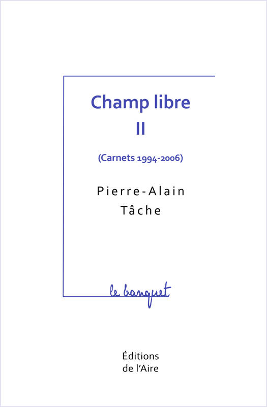 Dans ce deuxième volume de Champ libre, on retrouve Pierre-Alain Tâche au mitan de la cinquantaine et toujours en quête de lui-même. Un portrait en creux s'élabore au gré des oeuvres littéraires, musicales et picturales qu'il questionne. Mais c'est l'exploration des arcanes de sa propre écriture (où on le retrouve dans la proximité de Jaccottet, de Bonnefoy ou de Pontalis) qui constitue le fil rouge de ces pages. Ce qui n'exclut nullement les récits et les souvenirs personnels, comme aussi l'évocation des rencontres, des retours aux mêmes lieux aimés ou les réflexions qu'inspirent les découvertes du voyage. À chaque fois, ce qui est en cause, c'est la relation d'un poète à l'être en un temps où la mort des amis et des proches le confronte au transcendant comme aussi à l'infirmité de la langue.