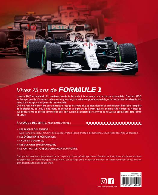 L’année 2025 est celle du 75e anniversaire de la Formule 1, le summum de la course automobile. C’est en 1950, en Europe, qu’elle s’est structurée en tant que catégorie reine du sport automobile, mais les racines des Grands Prix remontent aux premiers jours de l’automobile. Ce livre vous emmène dans un fantastique voyage à travers plus de sept décennies en célébrant l’histoire complète de la discipline, de 1950 à nos jours, du retour des seigneurs de l’avant-guerre, comme Alfa Romeo et Mercedes, aux concurrents de pointe comme Red Bull et McLaren, en passant par l’arrivée de nouveaux spécialistes tels Ferrari et Lotus. À chaque décennie, vous retrouverez : - les pilotes de légende : Juan Manuel Fangio, Jim Clark, Niki Lauda, Ayrton Senna, Michael Schumacher, Lewis Hamilton, Max Verstappen ; - les événements mémorables ; - la vie en coulisses ; - les voitures emblématiques ; - les portraits de tous les champions du monde. Écrit par les excellents journalistes de la F1 que sont Stuart Codling et James Roberts et illustré par les photos choisies et légendées par le photographe James Mann, cet ouvrage offre un aperçu alléchant et magnifiquement conçu du plus grand sport automobile au monde.