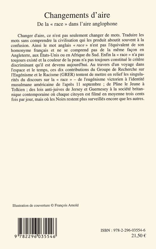 Le mot anglais "race" n'est pas l'équivalent de son homonyme français et ne se comprend pas de la même façon en Angleterre, aux Etats-Unis ou en Afrique du Sud. La "race" n'a pas toujours existé et la couleur de peau n'a pas toujours constitué le critère discriminant qu'il est devenu aujourd'hui. Au travers d'un voyage dans l'espace et le temps, ces contributions tentent de mettre en relief les singularités du discours sur la "race".