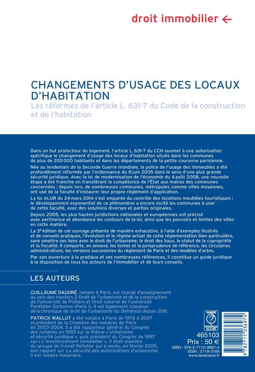 À jour des dernières réformes et de la jurisrudence récente, l'ouvrage expose le nouveau régime du changement d'usage des locaux d'habitation. Par son ouverture à la pratique et ses nombreuses références, cet ouvrage constitue un guide juridique à la disposition de tous les acteurs de l'immobilier et de leurs conseils.