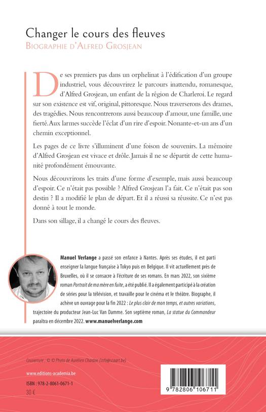 Un parcours inattendu, romanesque. Alfred Grosjean est un enfant de la région de Charleroi. De ses premiers pas dans un orphelinat à l’édification d’un groupe industriel, la démarche a été longue. Le chemin exceptionnel. 91 ans ont passé. Le regard sur son existence est vif, original, pittoresque. Drames, tragédies. Mais aussi beaucoup d’amour, une famille, une fierté. Aux larmes succède l’éclat d’un rire d’espoir. Mémoire sensible, vivace, drôle. Les pages de ce livre s’illuminent d’une foison d’images, de souvenirs. Alfred Grosjean a réussi sa réussite. Ce n’est pas donné à tout le monde, beaucoup de réussites sont des échecs. Dans son sillage, il a changé le cours des fleuves.