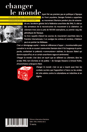 Changer le monde est à ce jour le meilleur témoignage - le plus documenté, le mieux charpenté, le plus autocritique aussi - sur l'anarchisme français des années 1940-1950. Il nous fait revivre la Libération, les grandes grèves de 1947, 1953 ou 1955, la guerre d'Indochine, la guerre d'Algérie, et bien sûr Mai 68. Incarcéré en 1957, l'auteur reprend du service en 1968 dans le mouvement communiste libertaire et sera, jusqu'à sa disparition, adhérent d'Alternative libertaire. C'est un témoignage capital - textes et références à l'appui -, incontournable pour connaitre la vie de ce courant communiste libertaire dont il fut longtemps le porte-parole.