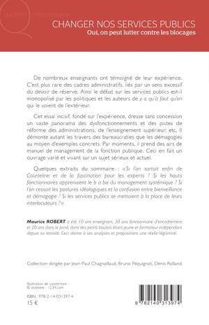 De nombreux enseignants ont témoigné de leur expérience. C'est plus rare des cadres administratifs, liés par un sens excessif du devoir de réserve. Ainsi le débat sur les services publics est-il monopolisé par les politiques et les auteurs de y a qu'à faut qu'on qui le voient de l'extérieur. Cet essai incisif, fondé sur l'expérience, dresse sans concession un vaste panorama des dysfonctionnements et des pistes de réforme des administrations, de l'enseignement supérieur, etc. Il démonte autant les travers des bureaucraties que les démagogies au moyen d'exemples concrets. Par moments, il prend des airs de manuel de management de la fonction publique. Ceci en fait un ouvrage varié et vivant sur un sujet sérieux et actuel.