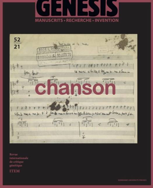 Aussi périlleux que soit l'intérêt de la génétique pour la chanson et son mode de création fondamentalement hybride, c'est le défi relevé par ce volume, à travers les œuvres de Brassens, Ferré, Barbara, Vian, Moustaki, jusqu'à Bertrand Belin et Philippe Djian. La chanson y est abordée comme un genre mixte, collaboratif, populaire, dont on ne connaît pas ou dont on méconnait les sources, et qui pourtant mérite tout l'intérêt de l'analyse génétique.