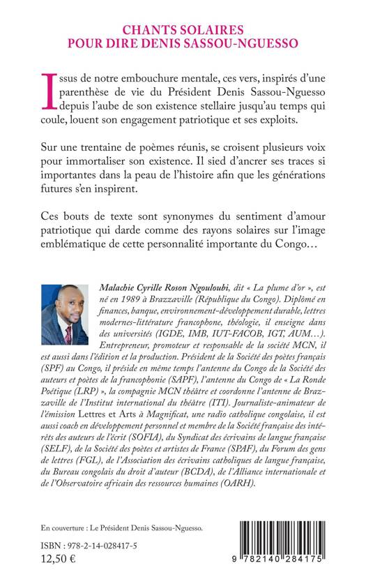 Issus de notre embouchure mentale, ces vers, inspirés d'une parenthèse de vie du Président Denis Sassou-Nguesso depuis l'aube de son existence stellaire jusqu'au temps qui coule, louent son engagement patriotique et ses exploits. Sur une trentaine de poèmes réunis, se croisent plusieurs voix pour immortaliser son existence. Il sied d'ancrer ses traces si importantes dans la peau de l'histoire afin que les générations futures s'en inspirent. Ces bouts de texte sont synonymes du sentiment d'amour patriotique qui darde comme des rayons solaires sur l'image emblématique de cette personnalité importante du Congo.