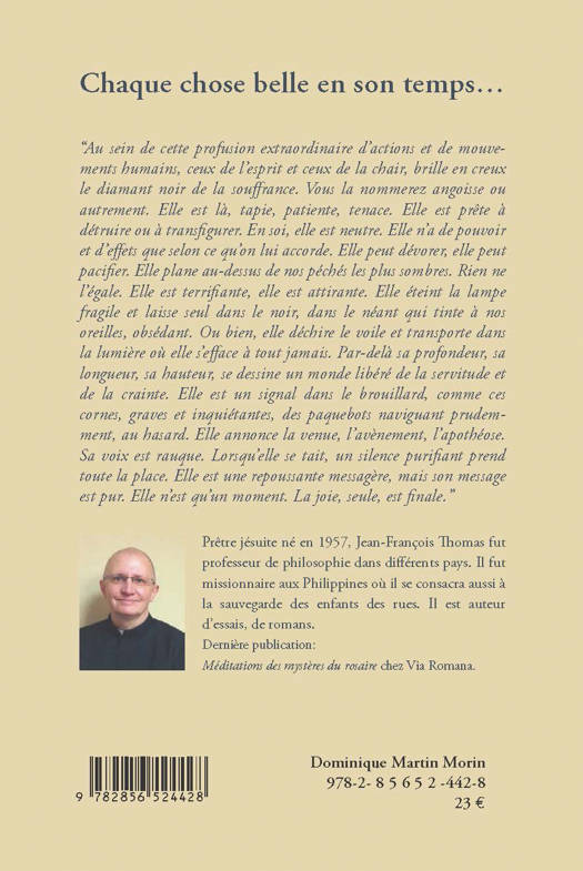 Il s'agit d'un récit, autour d'un personnage, Jérôme, dont on suit le parcours de l'enfance à la maturité. Sa mère, fille unique d'un très grand bourgeois d'affaire dont la fortune familiale colossale trouve sa source dans les fournitures aux armées napoléoniennes, est une mondaine. Son père est issu d'une vieille famille aristocratique périgourdine attachée aux valeurs traditionnelles, est militaire, absent. Jérôme passe ses vacances dans le chateau de ses grand-parents paternel ou il trouve le repos. Ce récit montre l'incompatibilité de ces deux milieux, l'un est dédié au règne de Mammon a sa superficialité, a son appétit de pouvoir et de domination, l'autre attaché à la famille, à la terre des ancêtres et à la tradition. Jérôme navigue entre ces deux mondes, écartelé, il ne trouvera le repos qu'en s'ancrant dans ce chateau, dans cette terre périgourdine de sa famille paternelle. AUTEUR Jean-François Thomas, né en 1957, prêtre jésuite, est le fils spirituel du cardinal Henri de Lubac.