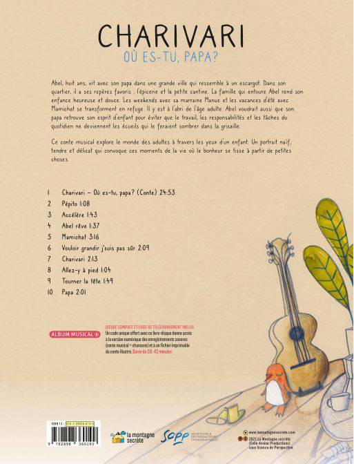 Ce conte musical explore le monde des adultes à travers les yeux d'un enfant. Un portrait naïf, tendre et délicat qui convoque ces moments de<br /> la vie où le bonheur se tisse à partir de petites choses.<br /> Abel, huit ans, vit avec son papa dans une grande ville qui ressemble à un escargot. Dans son quartier, il a ses repères favoris : l'épicerie et la petite cantine. La famille qui entoure Abel rend son enfance heureuse et douce. Les weekends<br /> avec sa marraine Manue et les vacances d'été avec Mamichat se transforment en refuge. Il y est à l'abri de l'âge adulte. Abel voudrait aussi que son papa retrouve son esprit d'enfant pour éviter que le travail, les responsabilités et les tâches du quotidien ne deviennent les écueils qui le feraient sombrer dans la grisaille.