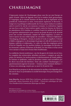 L’imposante stature de Charlemagne plane sans fin sur une Europe en quête d’unité, héros de légende sorti de la sombre forêt germanique, il s’imprègne de la chaude lumière de Rome et de la légitimité sacrée pontificale. Enfermant sa mère, bousculant Aquitains et Bavarois, il rompt avec la politique traditionnelle des Francs pour réaliser la synthèse entre le nord et le sud de son immense royaume. La réalisation s’appuie sur une force armée d’intervention rapide contre les Saxons, les Slaves et les musulmans d’Al-Andalus et combine l’esprit de méthode du droit et de la gestion administrative pour asseoir un projet de paix et de sécurité pour une société chrétienne, inspiré de s. Augustin. La mise en œuvre repose sur une solide équipe de conseillers : Fulrad, le diplomate ; Chrodegang, le liturgiste ; Alcuin, le maître d’école et Angilbert, l’éternel et fidèle compagnon. La dynamique de groupe est celle de la jeunesse et de femmes cultivées et séduisantes. Le cadre est celui du somptueux palais d’Aix-la-Chapelle avec les marbres italiens, les mosaïques de Byzance et les étonnants cadeaux d’Haroun-al-Rashid, l’art des bains et d’un savoir vivre mesuré à l’aune de la bonne bière houblonnée.