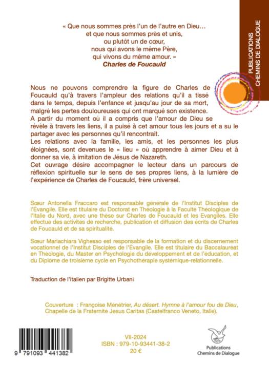 Nous ne pouvons comprendre la figure de Charles de Foucauld qu'à travers l'ampleur des relations qu'il a tissé dans le temps, depuis l'enfance et jusqu'au jour de sa mort, malgré les pertes douloureuses qui ont marqué son existence. A partir du moment où il a compris que l'amour de Dieu se révèle à travers les liens, il a puisé à cet amour tous les jours et a su le partager avec les personnes qu'il rencontrait. Les relations avec la famille, les amis, et les personnes les plus éloignées, sont devenues le « lieu » où apprendre à aimer Dieu et à donner sa vie, à imitation de Jésus de Nazareth. Cet ouvrage désire accompagner le lecteur dans un parcours de réflexion spirituelle sur le sens de ses propres liens, à la lumière de l'expérience de Charles de Foucauld, frère universel.