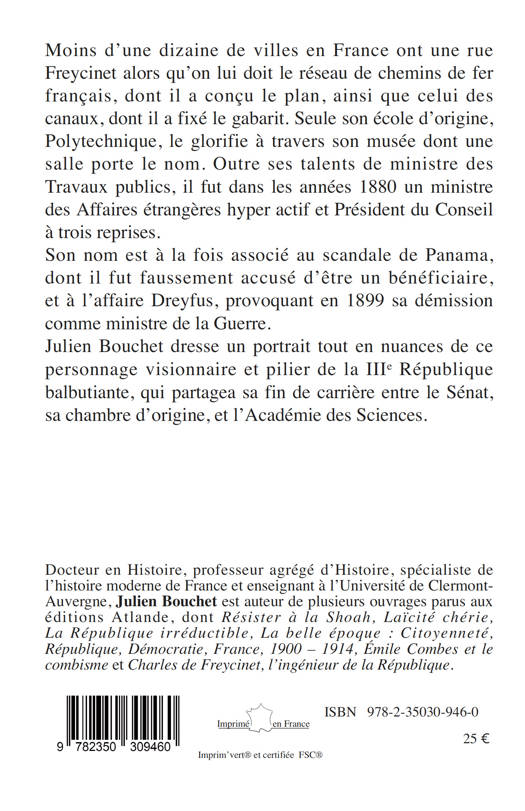 À l'occasion du centenaire de la mort de Charles de Freycinet, Julien Bouchet, qui en est le meilleur spécialiste puisque le seul à lui avoir consacré une thèse, propose de redécouvrir ce personnage central dans la vie de la France moderne et portant méconnu.