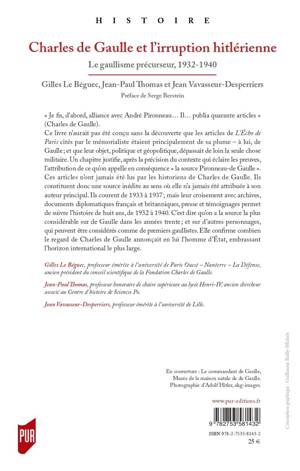 Ce livre n’aurait pas été conçu sans la découverte que les articles de L’Écho de Paris cités par le mémorialiste étaient principalement de sa plume – à lui, de Gaulle ; et que leur objet, politique et géopolitique, dépassait de loin la seule chose militaire. Un chapitre justifie, après la précision du contexte qui éclaire les preuves, l’attribution de ce qu’on appelle en conséquence « la source Pironneau-de Gaulle ». Ces articles n’ont jamais été lus par les historiens de Charles de Gaulle. Ils constituent donc une source inédite au sens où elle n’a jamais été attribuée à son auteur principal. Ils courent de 1933 à 1937 ; mais leur croisement avec archives, documents diplomatiques français et britanniques, presse et témoignages permet de suivre l’histoire de huit ans, de 1932 à 1940. C’est dire qu’on a la source la plus considérable sur de Gaulle dans les années trente ; et sur d’autres personnages, qui peuvent être considérés comme de premiers gaullistes. Elle confirme combien le regard de Charles de Gaulle annonçait en lui l’homme d’État, embrassant l’horizon international le plus large.